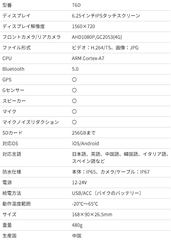 ■商品名:バイク用ディスプレイオーディオ「T6D」