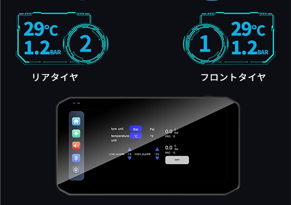 タイヤ空気圧と温度をリアルタイムに監視、安全な走行をサポート!