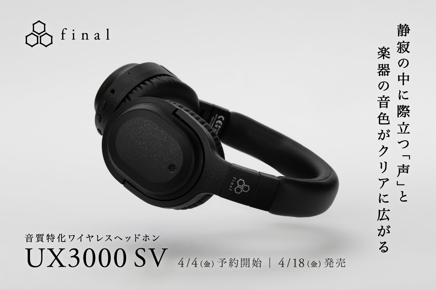 国内オーディオメーカー株式会社final(代表:細尾 満、本社:神奈川県川崎市)は、国内外で好評をいただいているワイヤレスヘッドホン「UX3000」の後継機、「UX3000 SV」を2025年4月4日(金)より予約開始、4月18日(金)より発売いたします。