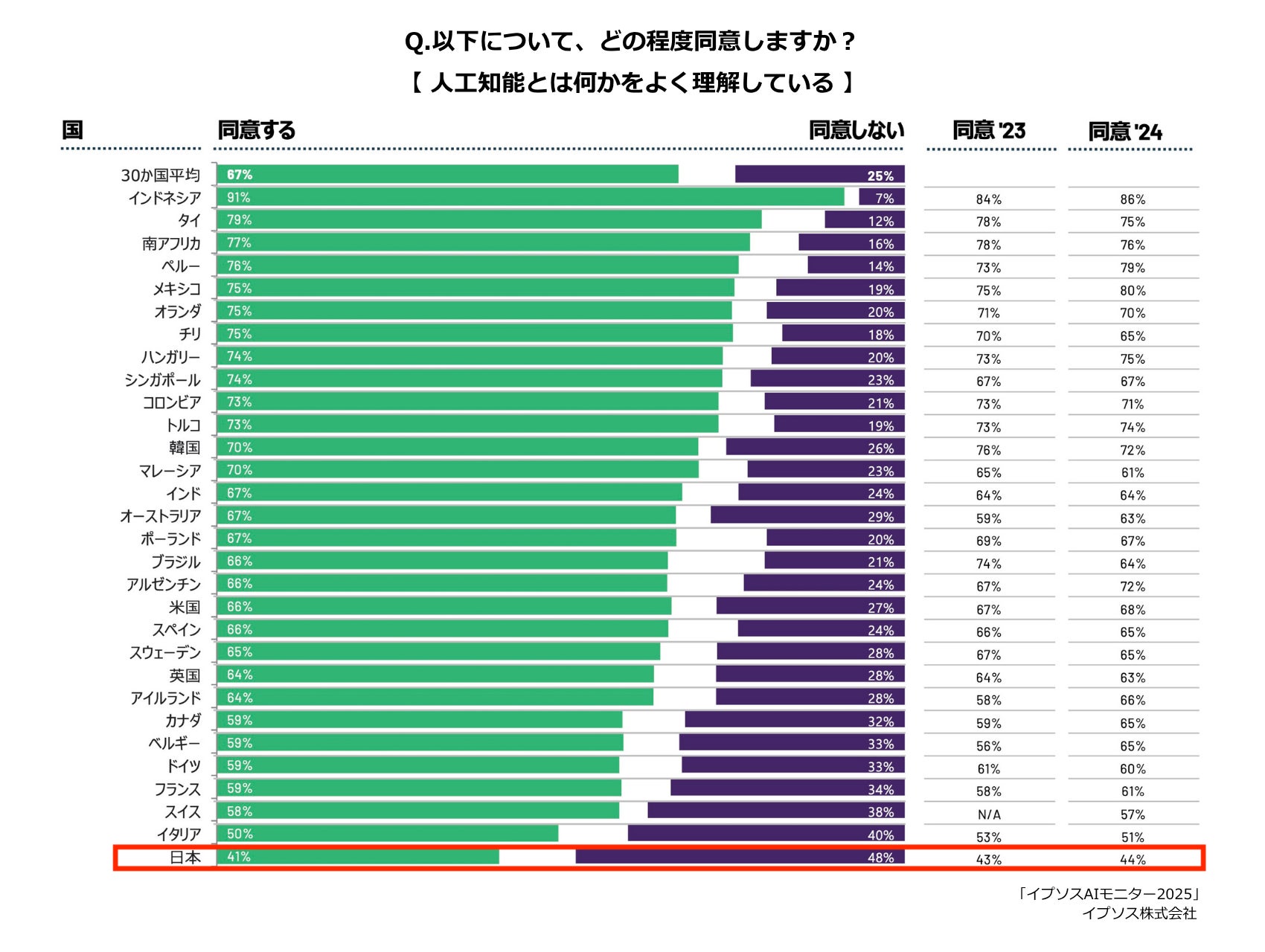 AIの浸透・活用への期待に世界とのギャップ"AIを理解している"と答えた日本人は41%、30ヵ国中最下位