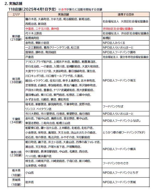 3店舗での開始により、当社での「フードドライブ」実施店舗は118店舗に拡大します。