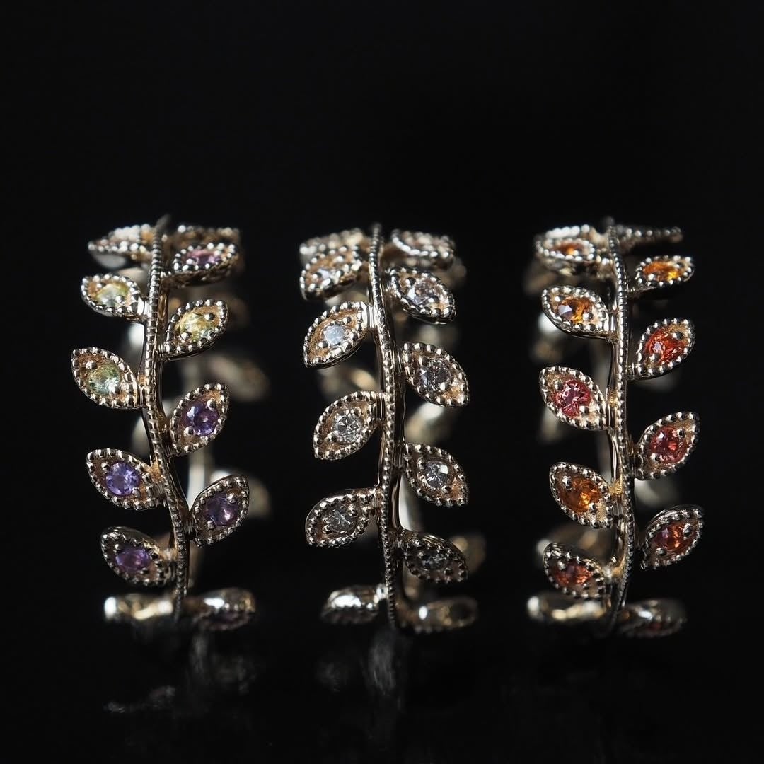 世界中で愛されてきたカーヴィングを、特別な一本のジュエリーへ。花や樹葉、果実を思わせる造形は、一つひとつが異なる表情を持ち、まるで小さな自然のカケラを指に纏うような感覚をもたらします。