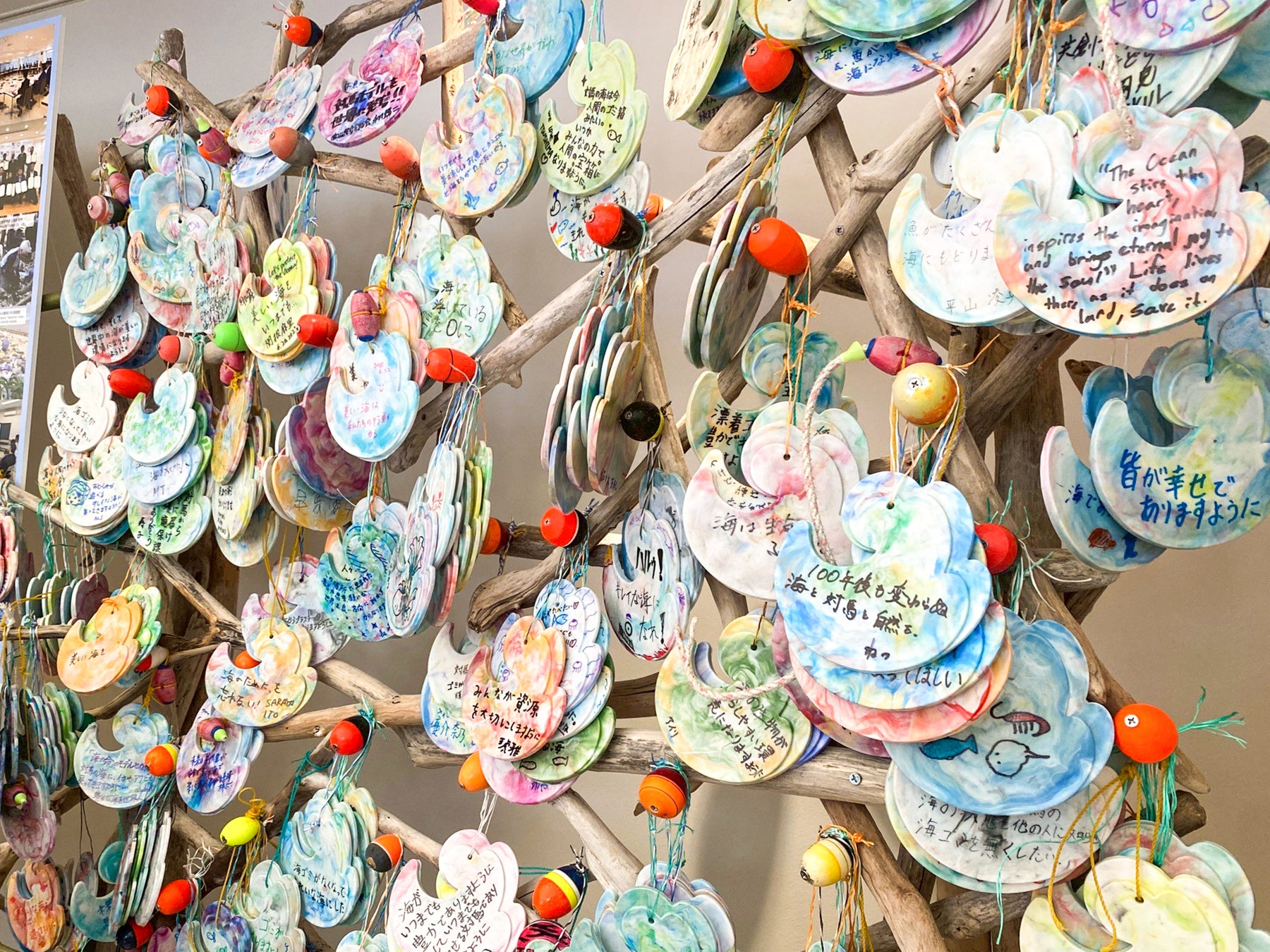 来場者と子どもたちの「海への願い」約300枚を会場に展示