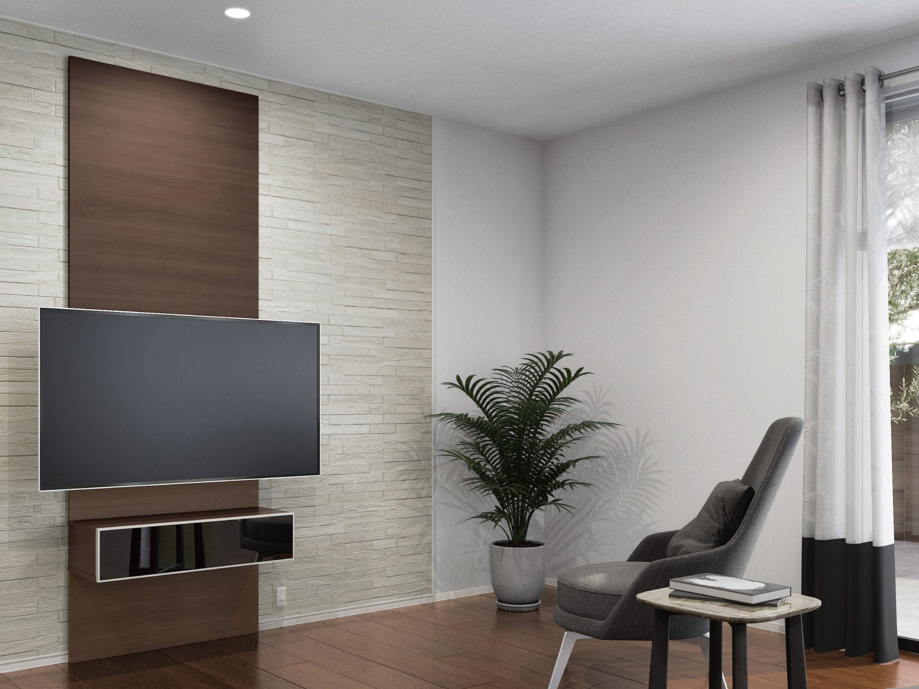 テレビの壁掛けに必要な補強工事、電源および配線の隠蔽工事、さらに、壁クロス一面(3,600×2,400mm)の施工で、理想の空間を演出できるプランです。