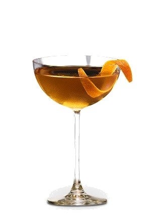 ③ 大きめの氷が入ったグラスに注ぎ、オレンジピールをツイストして、オイルを振りかける。