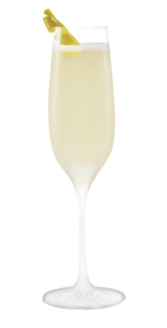 ① シャンパン(又はスパークリングワイン)以外の材料をシェイクし、よく冷やしたフルートグラスに注ぐ。