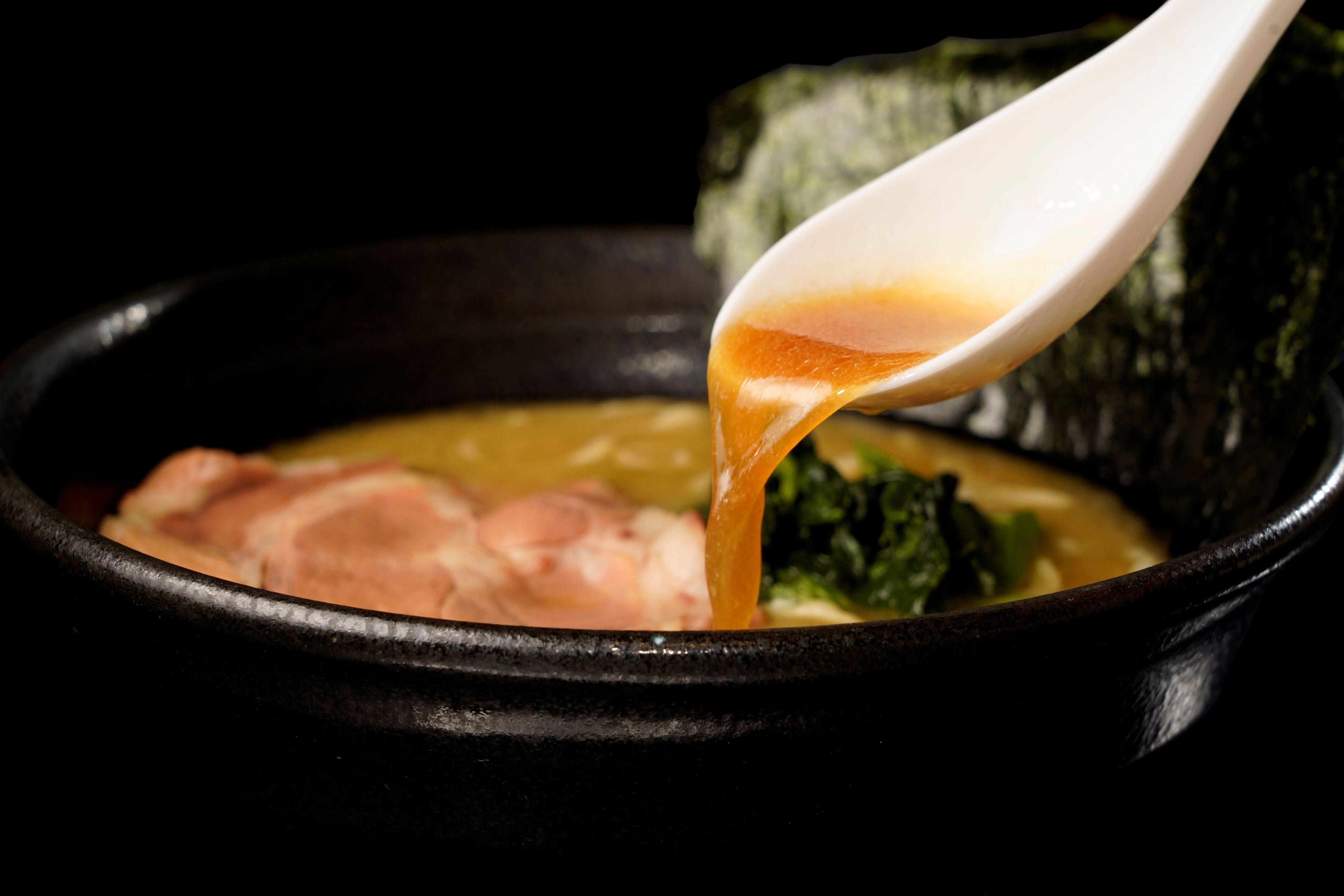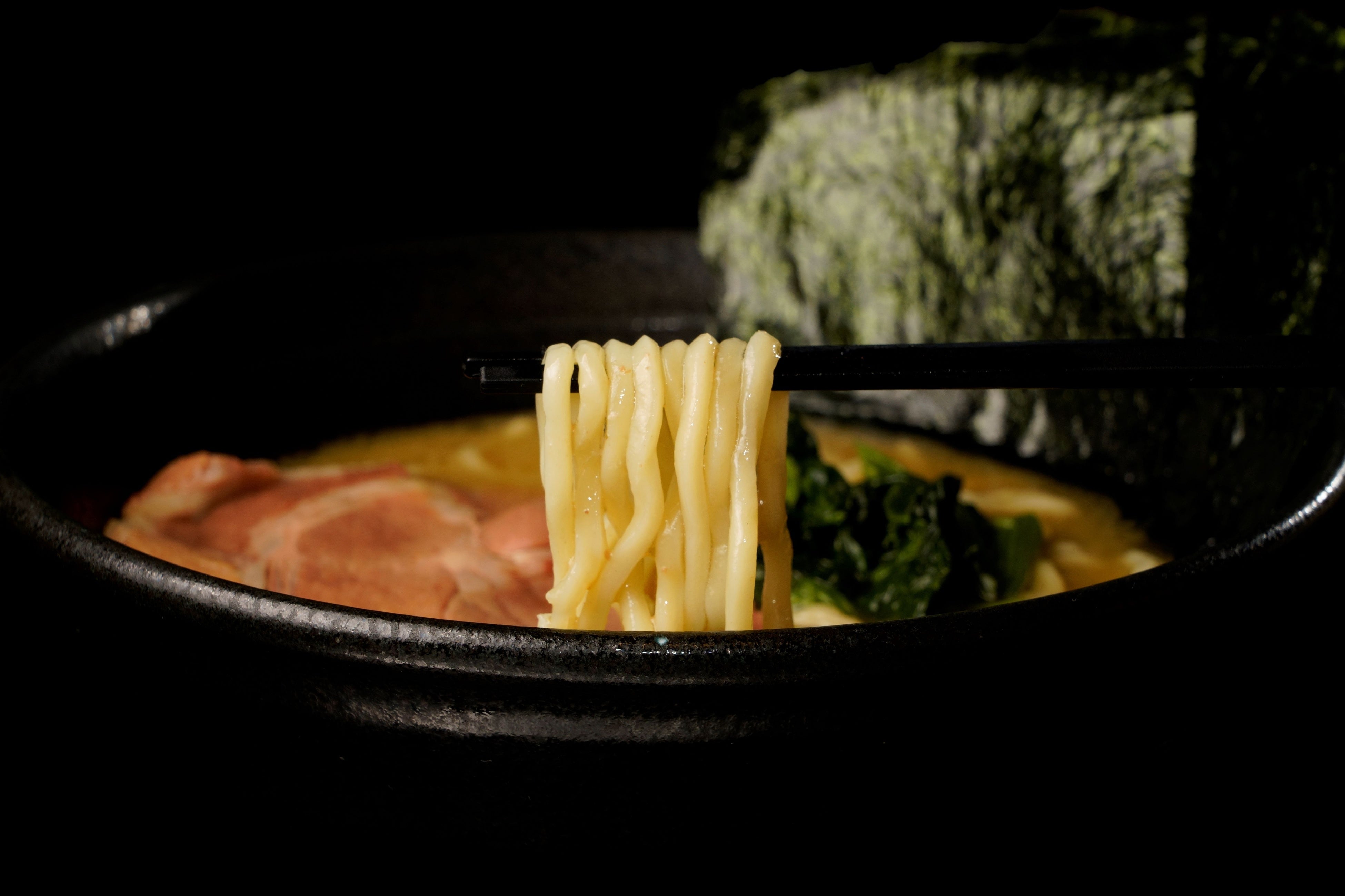 「マイルドな家系」と称されるスープは、豚骨の旨みをしっかりと感じられながらも臭みがなく、醤油とのバランスも抜群で口当たりまろやかなスープです。その極上スープに合わせるモチモチ食感の麺は、家系ラーメン店では珍しく自家製麺。複数の小麦粉をブレンドしたのちに店内で製麺を行い、濃厚スープに合う食感を実現するべく、ほどよいちぢれ麺に仕上げています。「スープと麺の両方が主役となれるラーメンを」という店主の思いが詰まった一杯です。