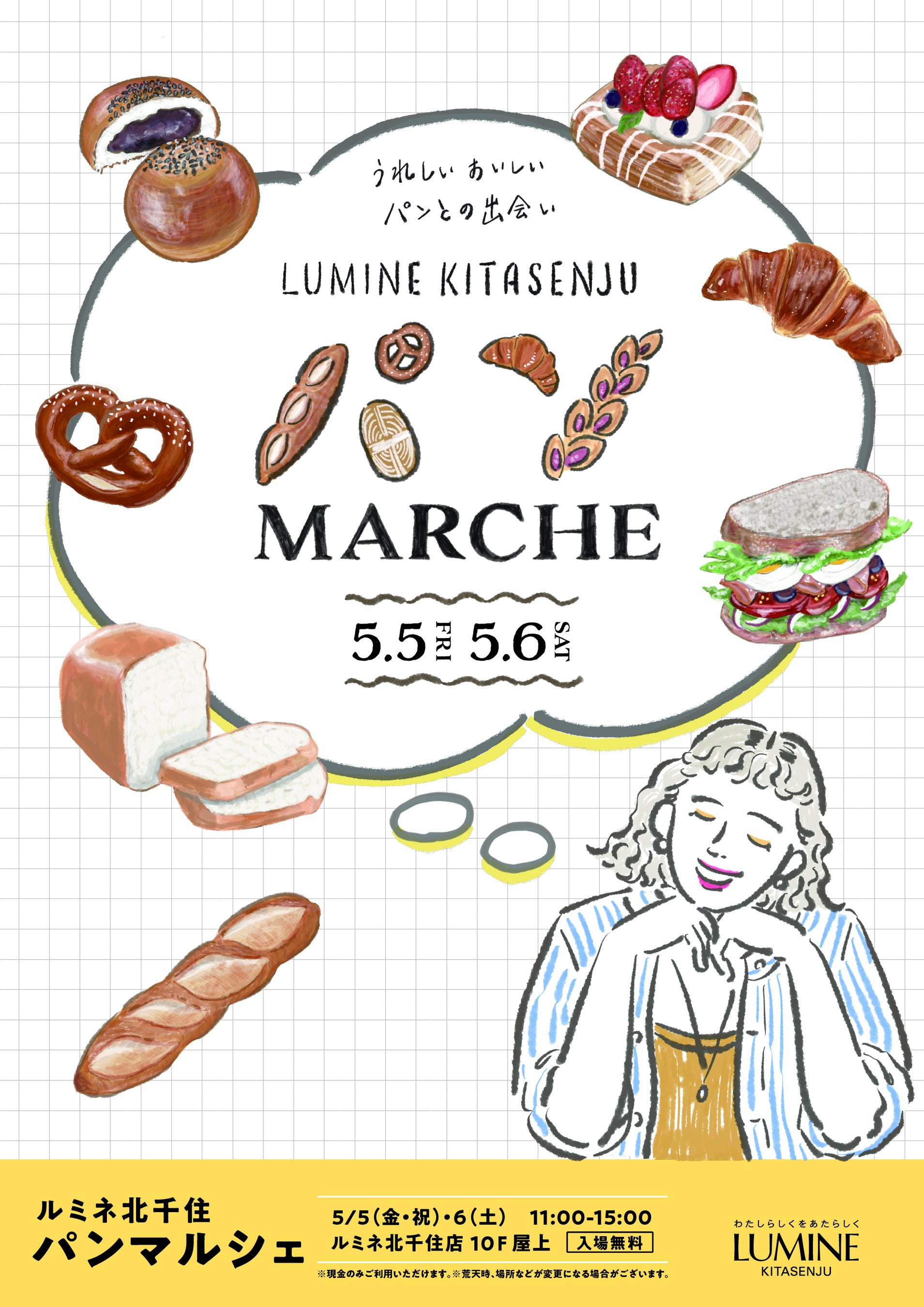 ルミネ北千住10F屋上にて、パンマルシェを開催します。北千住の2538キッチン デリコッペなど、東京近郊の人気のパン屋が多数出店します。さらに、会場内のショップで商品をご購入いただいたお客さまに、先着で館内で使用できるお買い物チケットをプレゼント!