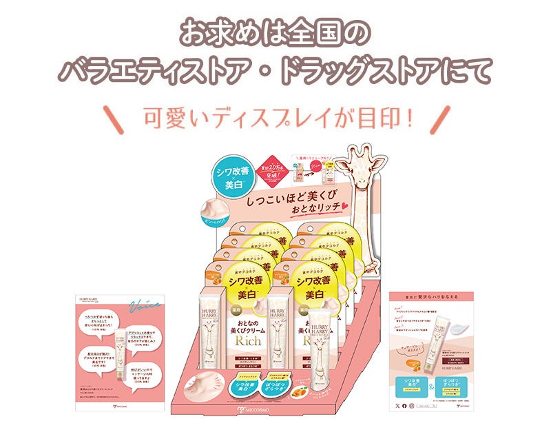 2017年に発売以降、累計20万本を売り上げた「ハリーハリー 大人の美くびクリーム」が薬用になって待望のリニューアル!