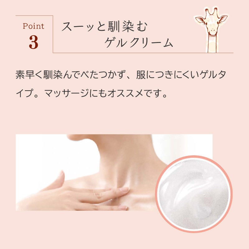 べたつきにくく伸びの良いゲルタイプなのでスーッと馴染んで疲れた首のマッサージにぴったりですよ。