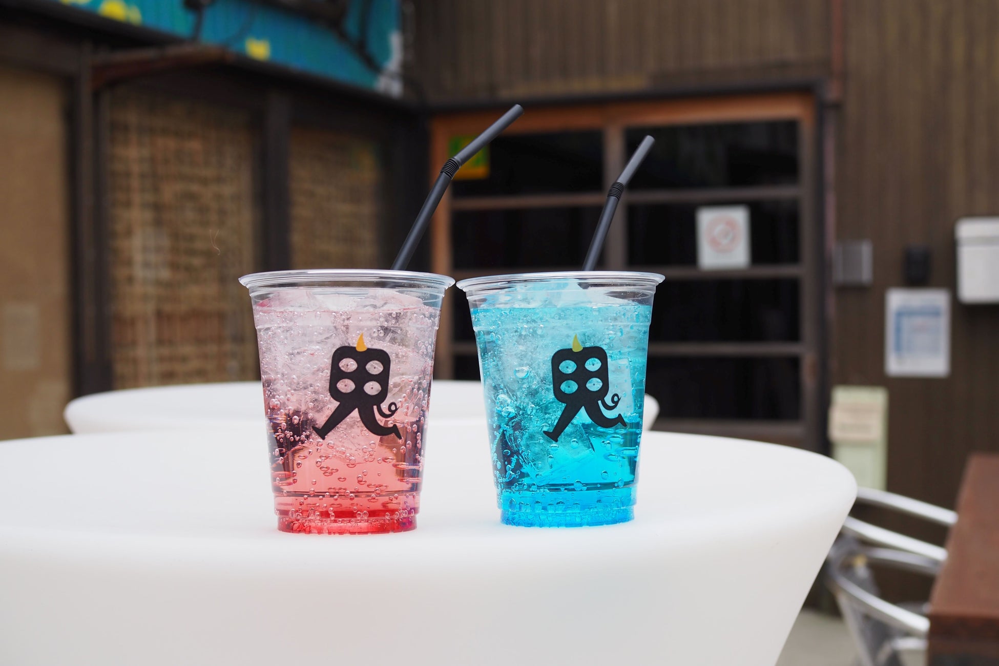 小豆島のお菓子やさん「おやつ工房 FUJI」さんの「鬼の指クッキー」「鬼堅いクッキー」や、赤鬼サイダー、青鬼サイダーも妖怪barで販売。