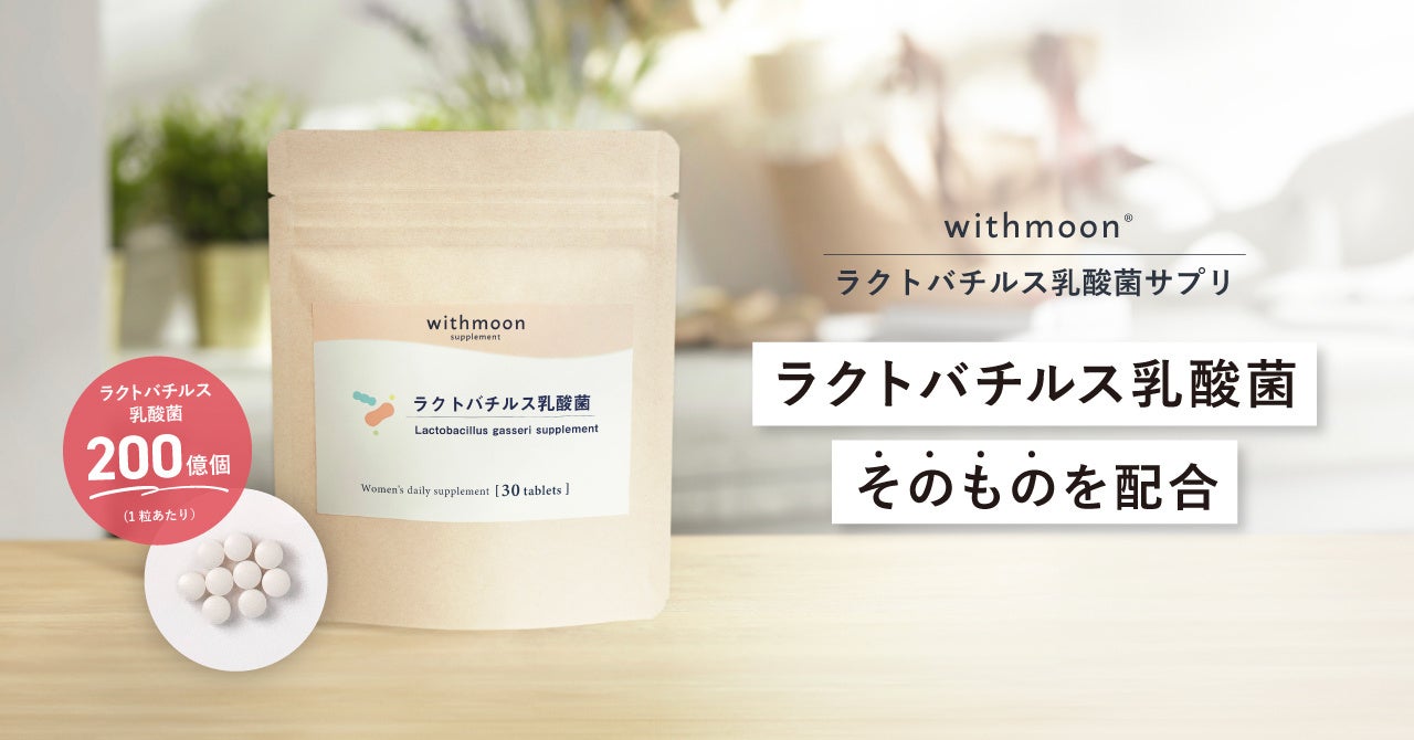生理などの女性特有の悩みに関連した女性のゆらぎをサポートするセルフケアブランド「withmoon®︎」では、デリケートゾーンソープやオイルセラム(美容液)などを展開しており、ご利用者のお声から近年デリケートゾーンのインナーケアの需要が高まっていることが分かりました。特に膣内フローラなどは様々な原因によって乱れやすいため、バランスをサポートするような目的で「ラクトバチルス」が注目されています。そこで今回、生理によりそうブランド「withmoon(ウィズムーン)」から、新たにラクトバチルス乳酸菌が摂れるサプリメントを開発しました。