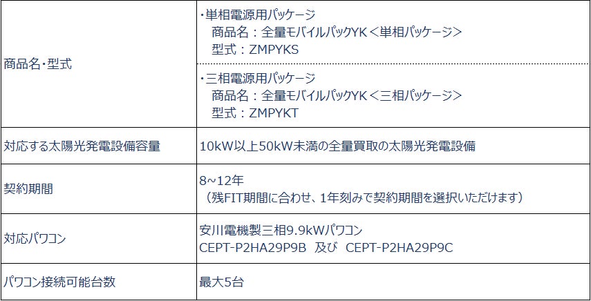 安川電機製三相9.9kWパワーコンディショナーとの接続及び出力制御機能を実装した「全量モバイルパックYK」の販売開始について