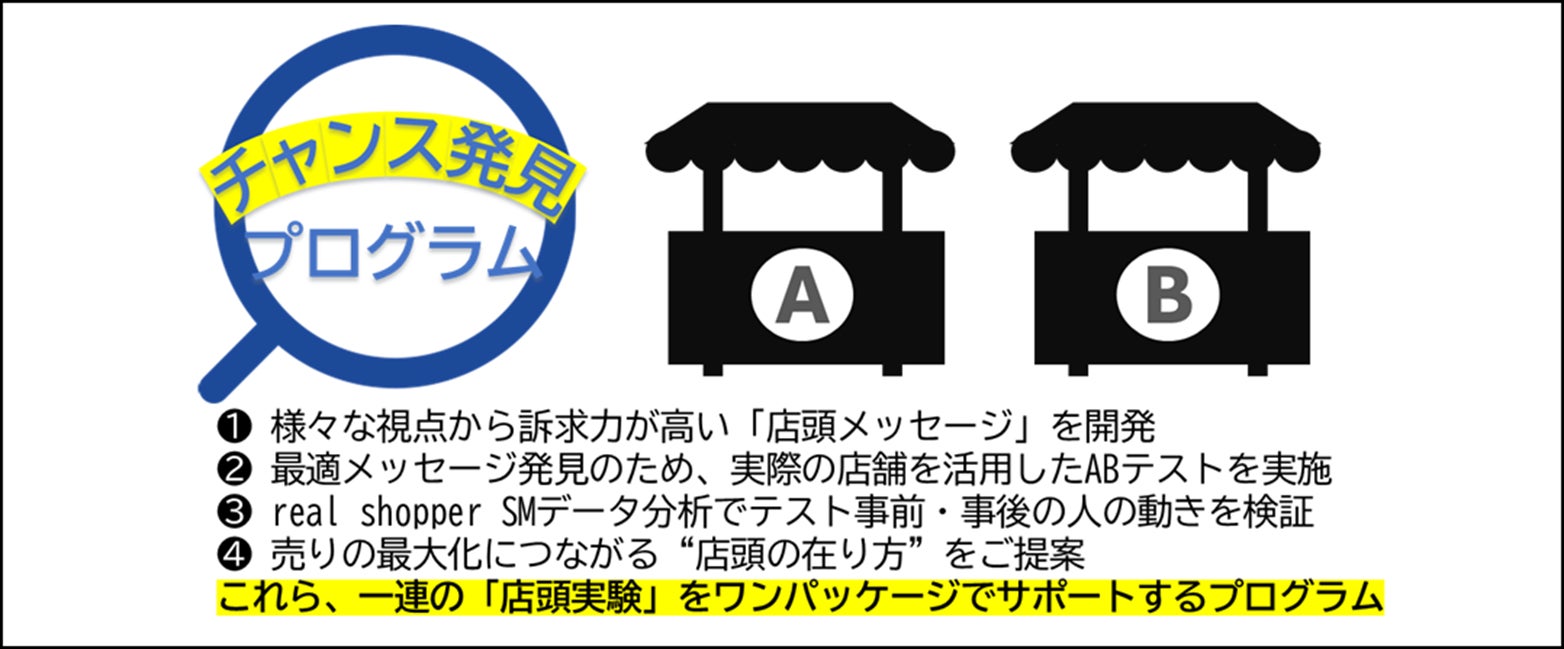 ショッパー(買物中のお客様)に向けてどのようにアクションすれば自社ブランドの購入に至るのか、またリピートしていただけるのはどのような場合か、について、仮説を実店舗店頭で検証できる