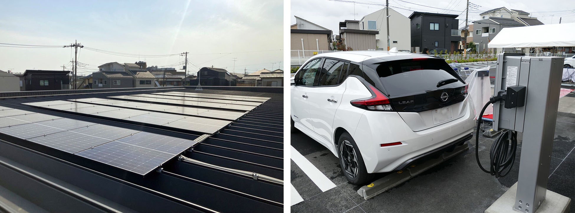 太陽光パネル、人感センサーによるライトなどの省エネ・創エネ設備によりリコージャパンでは首都圏初のNearlyZEBの認証を取得。外壁面は苔マットによる緑地化をしています。