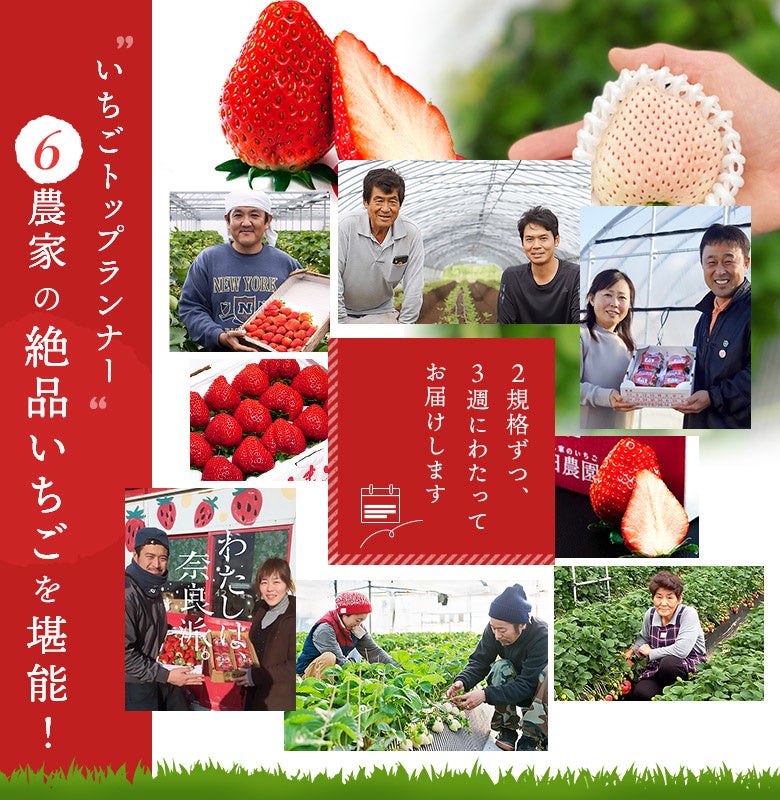 まさにいちご界のトップランナーである凄腕の6農家の絶品いちご堪能企画もご用意しました。