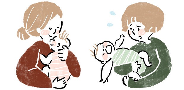 総合病院勤務・理学療法士養成校教員を経て現在は運動科学と小児の運動発達について講座・執筆などを行う理学療法士の得原藍(えはら・あい)さんによると、新生児の背骨の緩やかなカーブは、赤ちゃん自身が動こうとすることでS字のカーブに形成されていくため、それまではあまり背骨に縦方向の力を加えすぎないこと。つまり首がすわる前の抱っこでは適切に首や身体を支えることが大切だそうです。したがって抱っこのコツは、赤ちゃんの身体をしっかり密着させること。赤ちゃんの手足がぶらんと垂れて広がったり、頭が遠くに離れてしまうと、保育者の身体もつらくなるそうです。