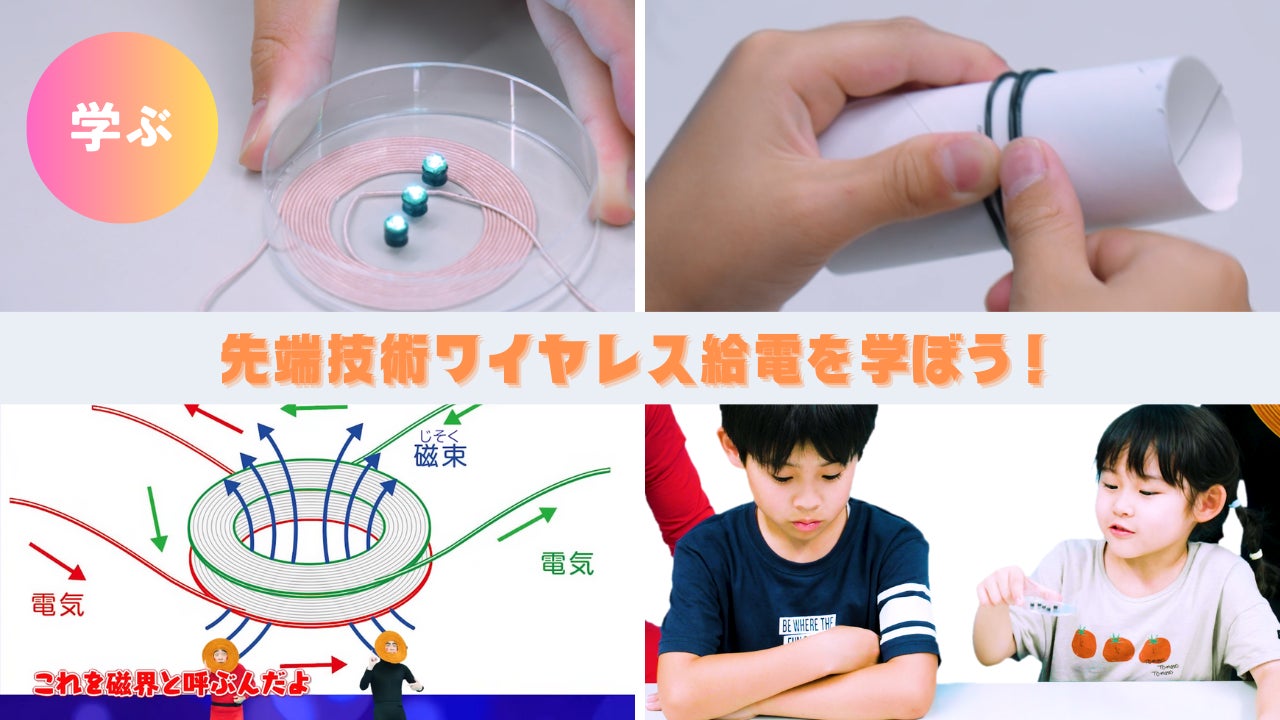 中学校理科の教育課程の中で学ぶ電磁誘導について学べます。ワイヤレス給電の原理解説から、実際にキットを使っての動作確認、オリジナルコイルを巻いて給電をさせてみるなど、直感的に科学の不思議を体感できます。