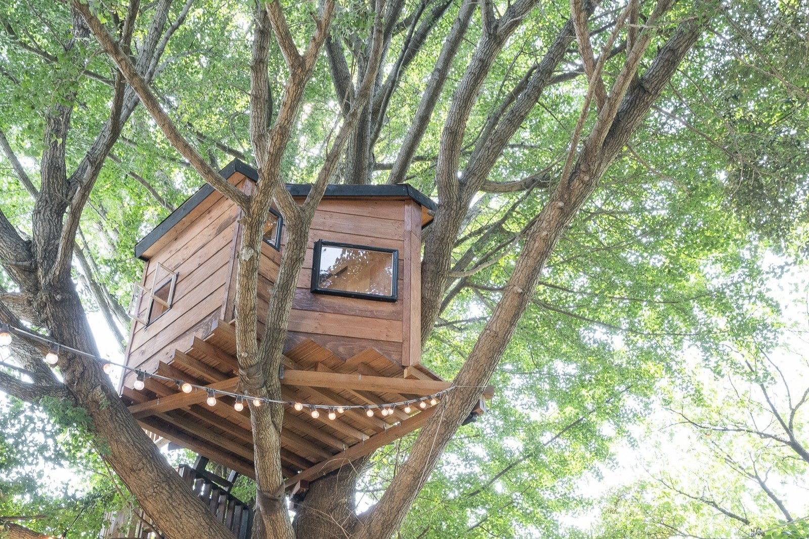 秘密基地のように、はしごをのぼるツリーハウスは、まるで絵本の世界。ツリーハウスから千葉公園を眺めたり、ウッドデッキに座ってコーヒーを飲んだりと都心にいながら自然の中でくつろげる空間をつくりました。