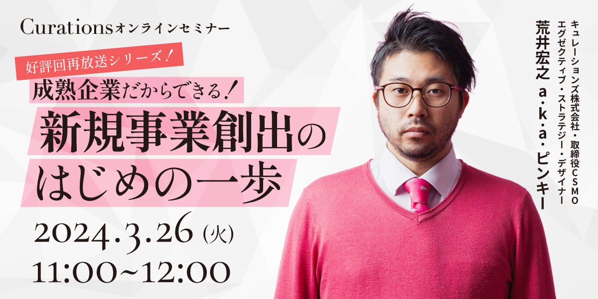 顧客企業のビジネス変革を成功に導くキュレーションズ株式会社(本社:東京都渋谷区、代表取締役社長:根本隆之、以下当社)は、『成熟企業だからできる!新規事業創出のはじめの一歩』を2024年3月26日(火)に開催いたします。