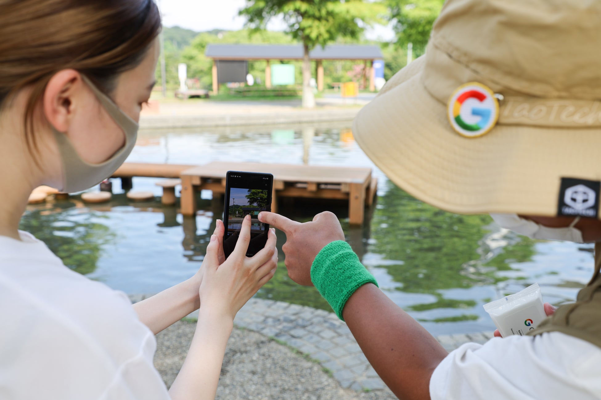 初日にご来場いただいた方々は、写真に写り込んだしまった人や電柱、植物などを「消しゴムマジック」という機能を活用し消していました。また、AIの力で背景をきれいにぼかせるポートレート機能でお子様を撮影している参加者など、思い思いの撮影を楽しんでいらっしゃいました。参加者からは「Google Pixelにこんな機能がついているなんて知らなかった。いろいろな写真を撮れて楽しかった」「消しゴムマジックを初めて使ったが映り込んでしまった人を想像以上に綺麗で簡単に消すことができたので驚いた。」といったコメントも頂き、「Google Pixel サマーキャンプ」をお楽しみいただきました。