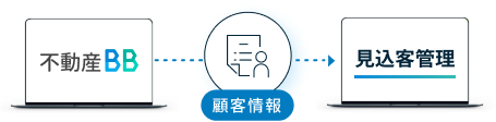 不動産BBに登録された情報を「見込客管理(CRM)システム」と連携させることによって、追客業務を効率化できます。