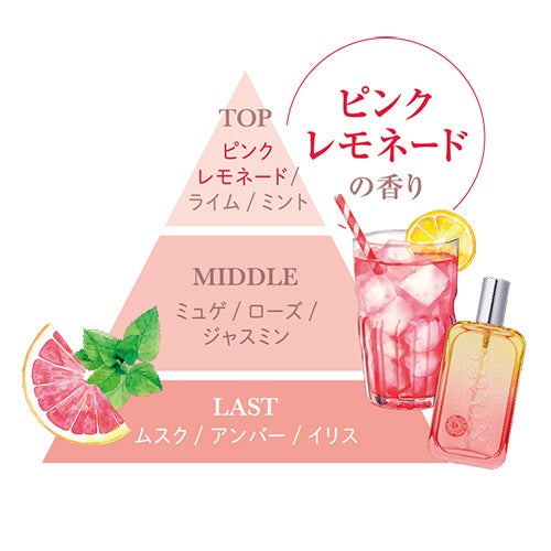 ■商品特徴 : ピンクレモネードの香りを楽しめるオードトワレ。
