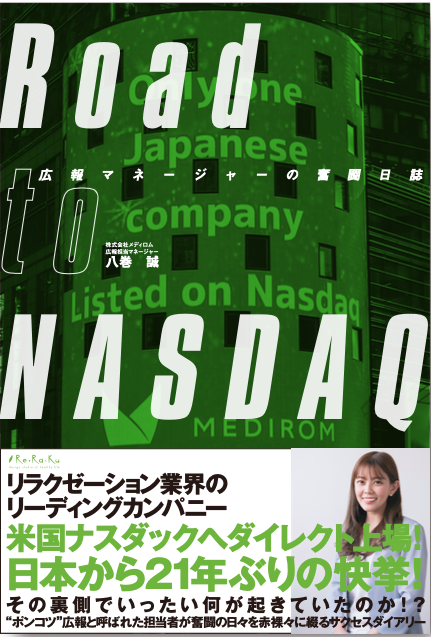 当社は、2020年12月29日に日本企業として21年ぶりにNasdaq Capital Market市場にダイレクト上場を果たしました。本書では、ナスダック上場に至るまでの数々の前例のない試練を目の当たりにした広報担当の八巻誠が、その軌跡を克明に記しています。新卒でベンチャー企業に入社し、セラピストや新卒採用担当として会社の成長と共に様々な経験をしてきた20代女性社員が、海外への上場準備の真っただ中に広報マネージャ―に就任。会社に降りかかる数々の試練に加え、初めての広報業務に体当たりで挑み奮闘する様子を赤裸々に公開しています。いつかは上場を夢を見る経営者はもちろん、日々の業務に悩みながらも頑張っている若手ビジネスパーソンの皆さまにもぜひ手に取っていただきたい一冊になっています。