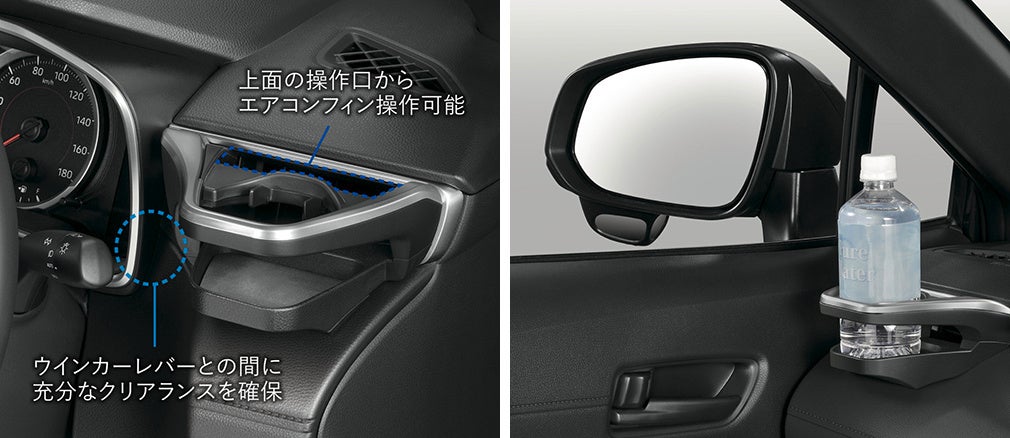 ※ドライビングポジションによっては、背の高いドリンクを置いた場合、ドアミラーの視界をさまたげる場合があります。
