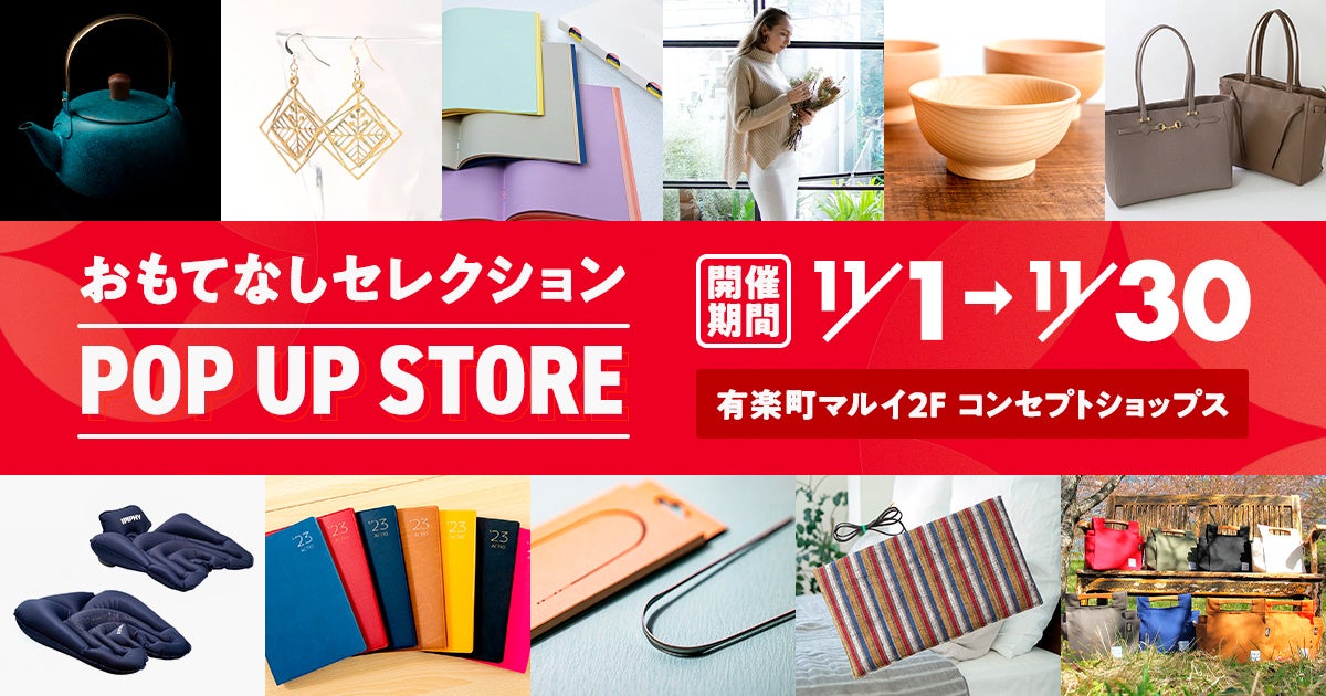 「有楽町マルイ」は、オフィスビルが立ち並ぶ丸の内や大手町や、有名百貨店や高級ブランド店が集う銀座に隣接しており、平日・休日問わず、ショッピングに訪れる人々とビジネスパーソンでにぎわう商業施設です。今回、おもてなしセレクションを受賞した11の企業が参加し、ギフトシーズンに先駆けて、家族のプレゼントやお世話になった方へのギフトなどにおすすめの” おもてなし心”あふれる商品を展示販売します。