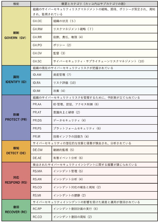 CSF 2.0 Core Function and Category names and identifiers(CSF 2.0 概要とカテゴリ識別子)