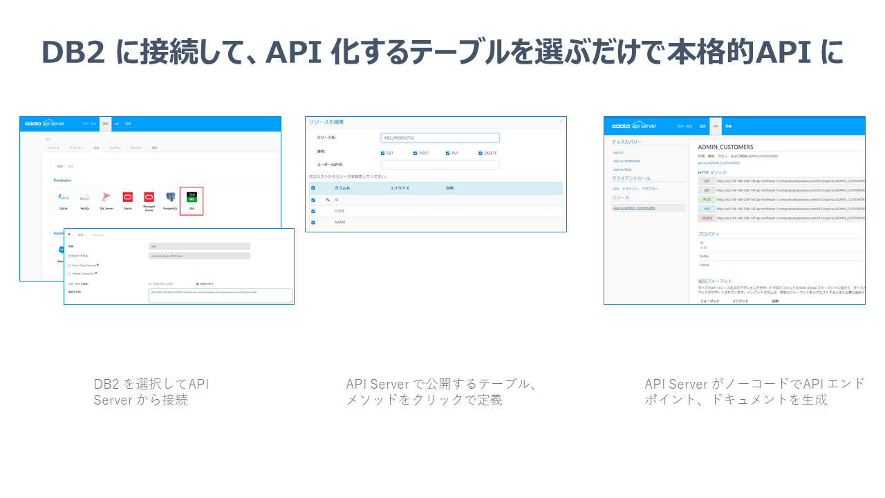 CData API Server は、DB から本格的なREST API をノーコードで生成できるAPI 開発・ホスティングプラットフォームです。API Server は、エンタープライズレベルの機能およびセキュリティを備えています。