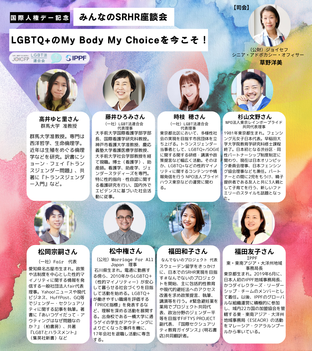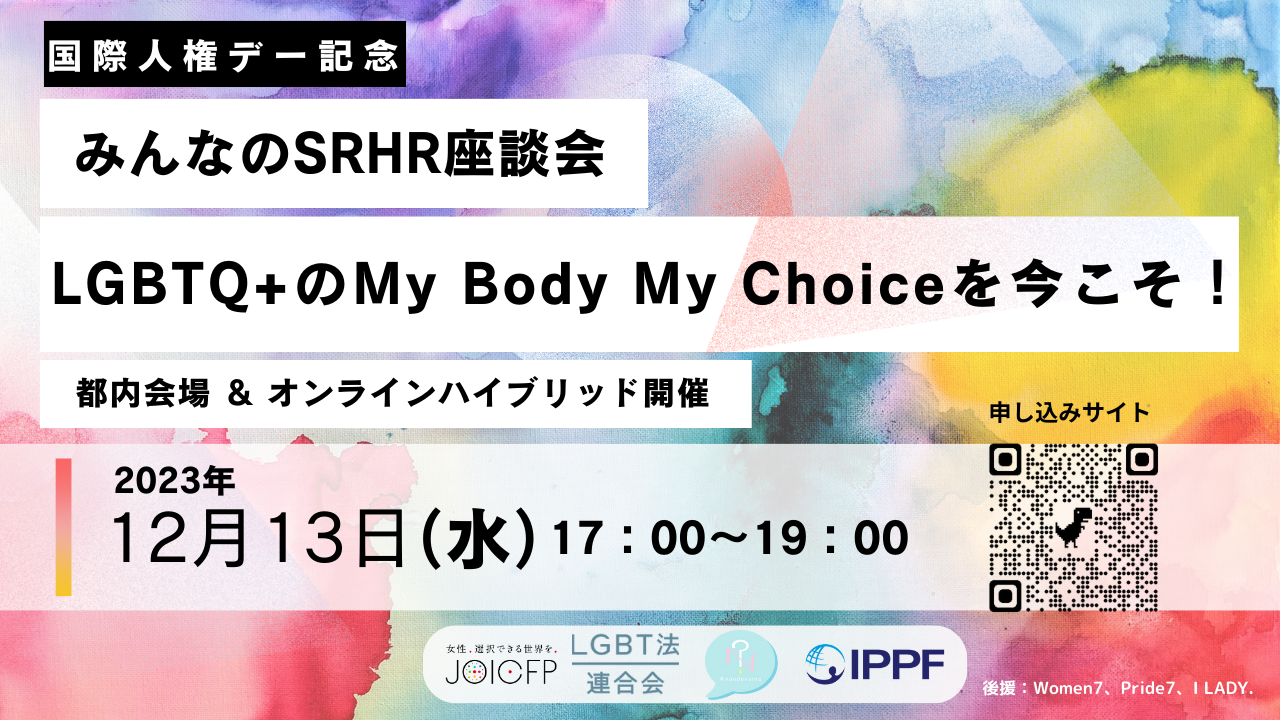 国際人権デー記念【LGBTQ+のMy Body My Choiceを今こそ!】~みんなのSRHR座談会~を都内会場&オンラインにて12月13日(水)開催