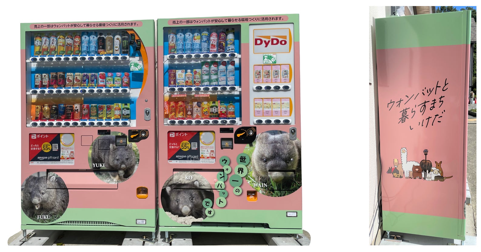 本協定は、当社と池田市が連携を強化することで、市民サービスの向上と地域の活性化を図ることを目的としており、取り組みの一環として、五月山(さつきやま)動物園で生活しているウォンバットの写真を全面にラッピングした「ウォンバット応援自動販売機」(以下、本自販機) を、9月25日(月)より同園にて稼働開始いたしました。本自販機の売上金の一部は、池田市の「池田市みんなでつくるまち推進基金」に寄付され、五月山動物園の整備事業などに役立てられる予定です。