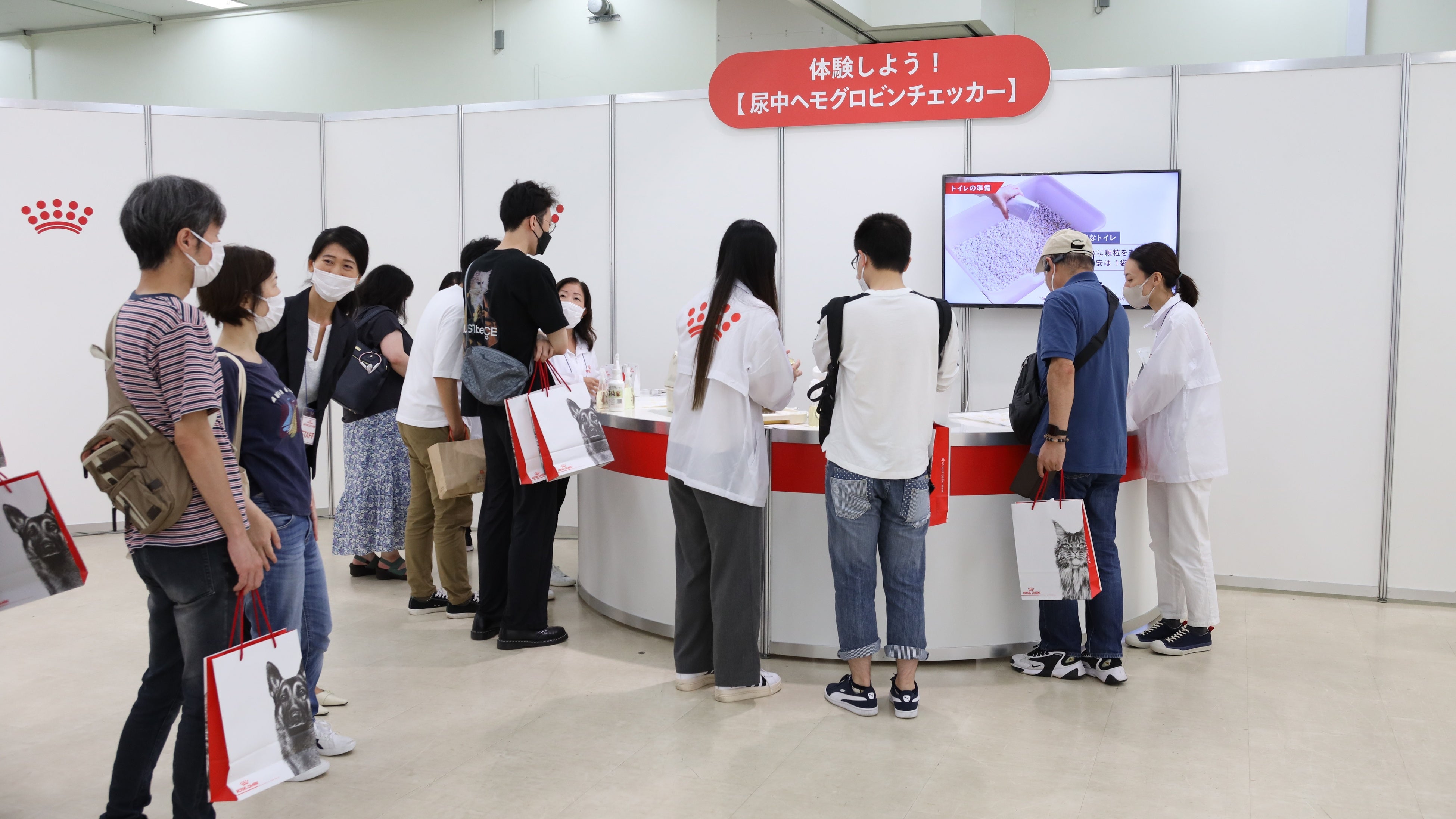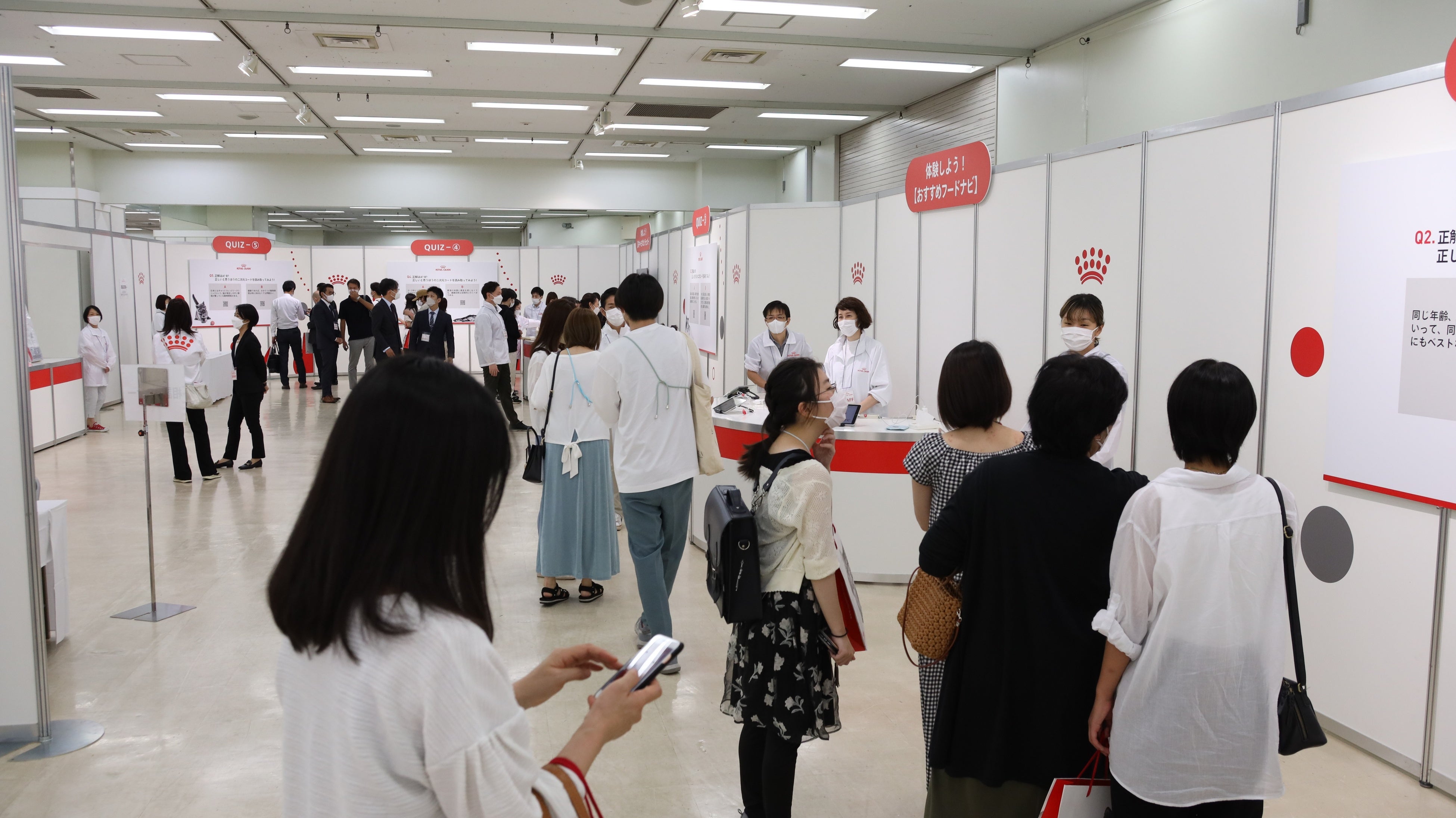 ロイヤルカナンは、会場に訪れたキャットオーナーが楽しく学べる体験型ブースを展開しました。ブース内5 か所に設置した猫に関するクイズに答えながら、ロイヤルカナンが提唱する「猫の“真の健康”を育むペットオーナーになるための5つのポイント」を学んだ方に景品をプレゼントする「キャットオーナーズチャレンジ・クイズ」のほか、猫の種類や体調にあったフードを iPad で診断できる「おすすめフードナビ体験」、ロイヤルカナン製品の体験など、様々なコンテンツを多くのキャットオーナーに体験いただき、愛猫の真の健康を学び実現していただくための取り組みを行いました。