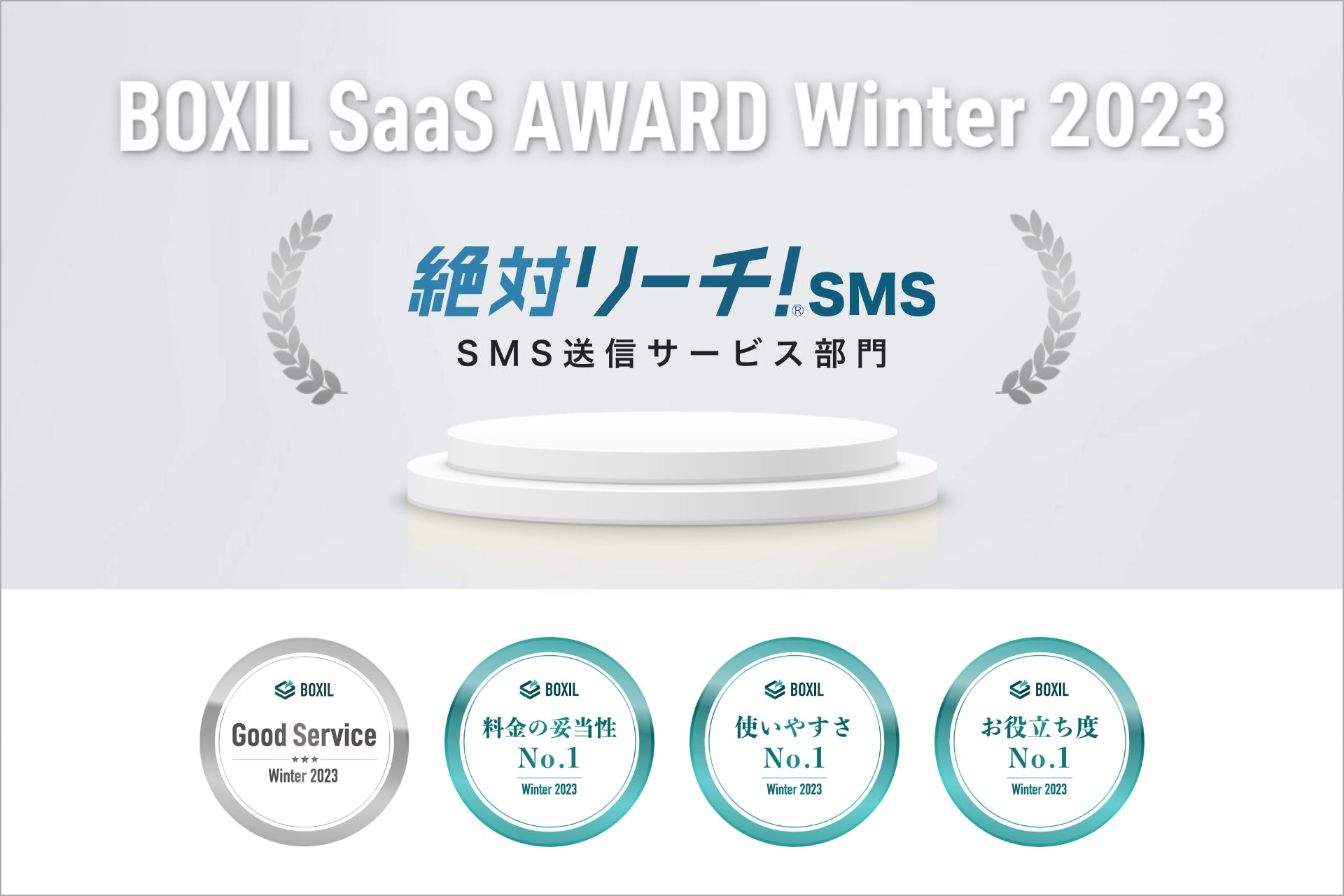 SMS送受信サービス「絶対リーチ!SMS」が「BOXIL SaaS AWARD Winter 2023」 SMS送信サービス部門で「Good Service」ほか3つのNo.1に選出