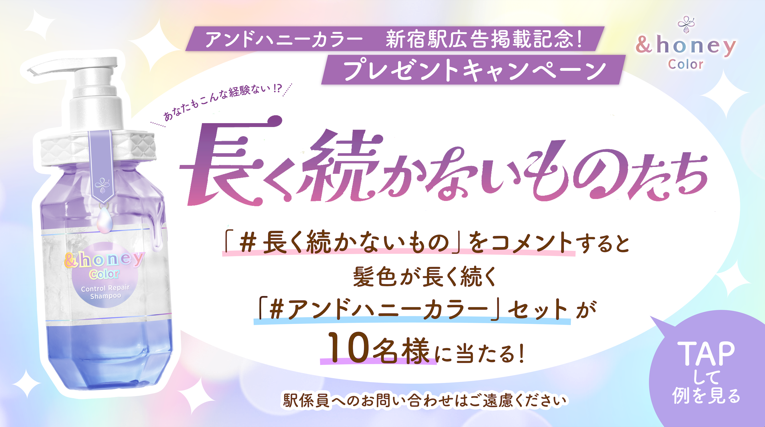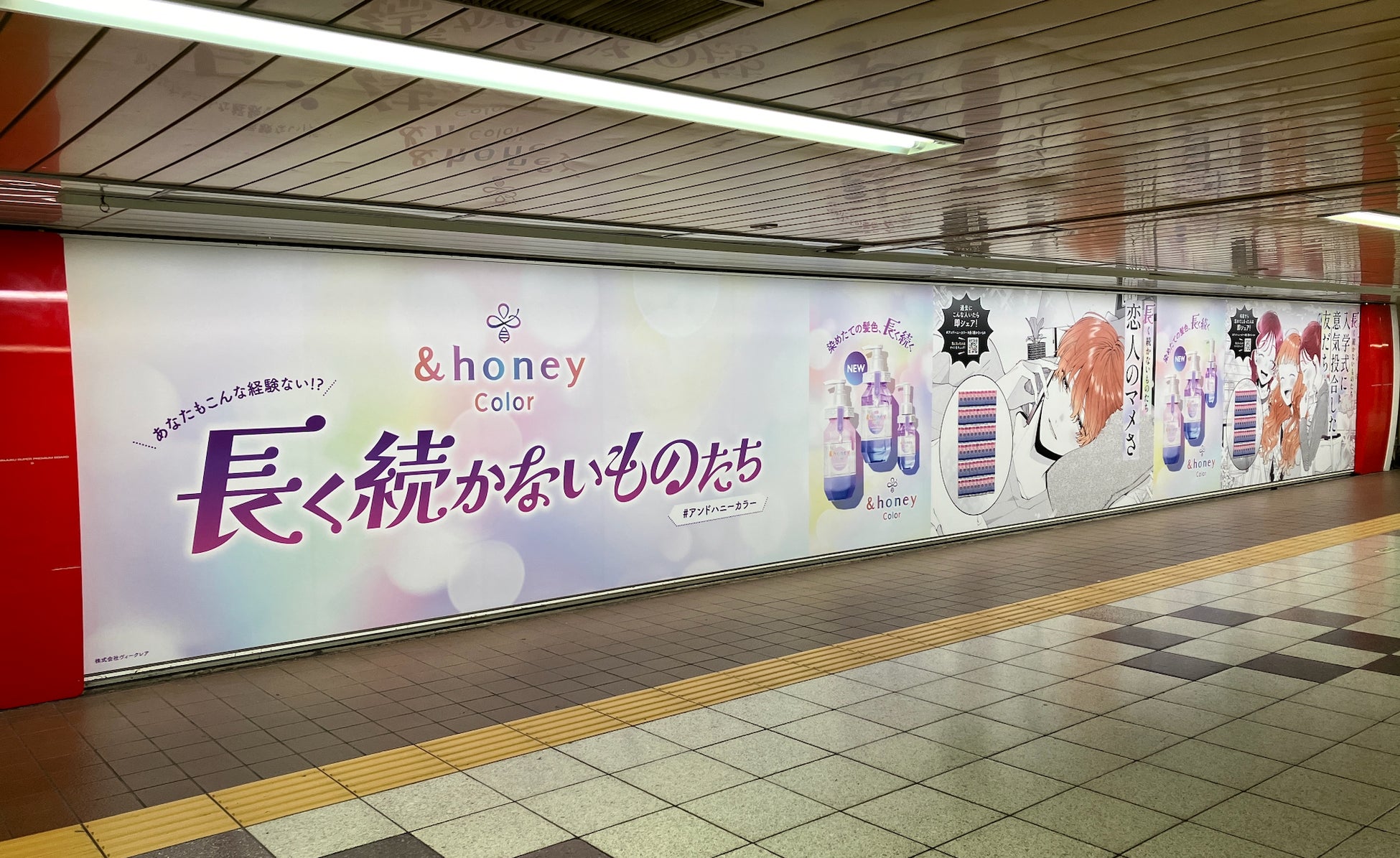 ヘアカラーした髪色をキープアンドハニー史上初のカラーケアシリーズ『&honey Color』の巨大ピールオフ広告「長く続かないものたち」が駅構内に登場!