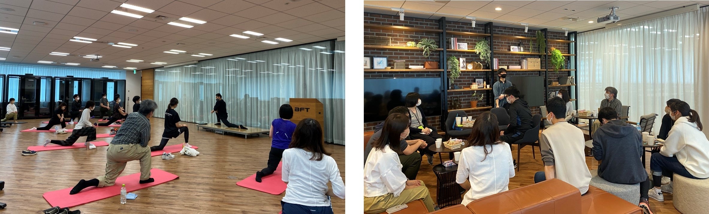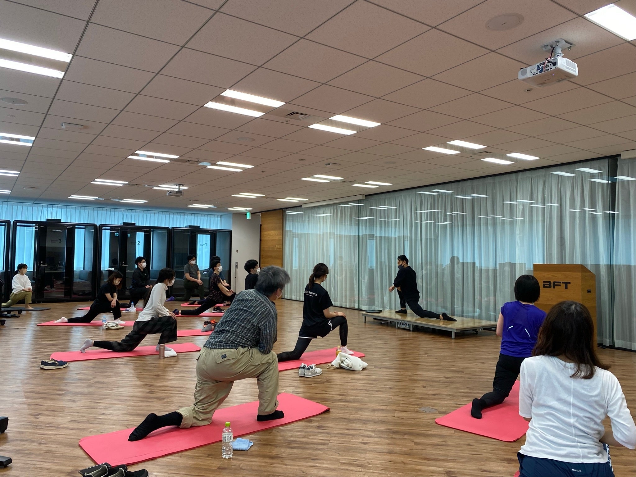参加者に話を伺うと、「コロナ禍で体重が増え、ダイエットをしたい」「日頃、体を動かす機会がない」などが参加の理由で、実際に参加をしてみて「楽しかったけど、しっかり体にききそう」「肩こりなど、気になる部分を動かせてよかった」という感想がありました。週に数回以上運動を取り入れているという参加者はほぼおらず、今回の「BFT Wellness Action」が参加者にとってに運動をするきっかけになったほか、普段話すことが少ない社員同士の交流も生まれ、リフレッシュの機会となりました。