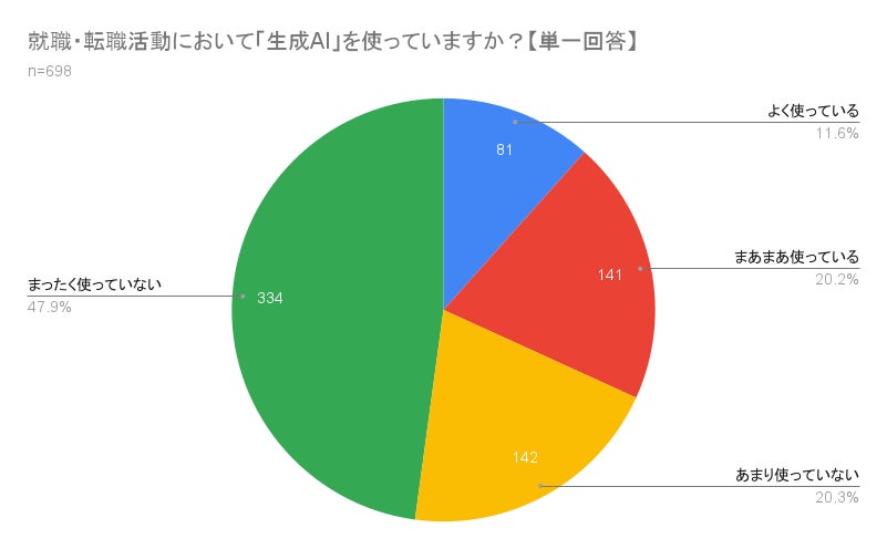 生成AIが日常生活に浸透する中、大学論文や就活などでの生成AI活用に関する話題をメディアで目にすることが増えています。また、「AIに代替される職種」についての議論も目立ちますが、実際に就職・転職活動をしているZ世代は「生成AIの活用」や「AI代替を見越した志望職種」についてどのように感じているのか、実態調査を実施しました(有効回答数:698)。