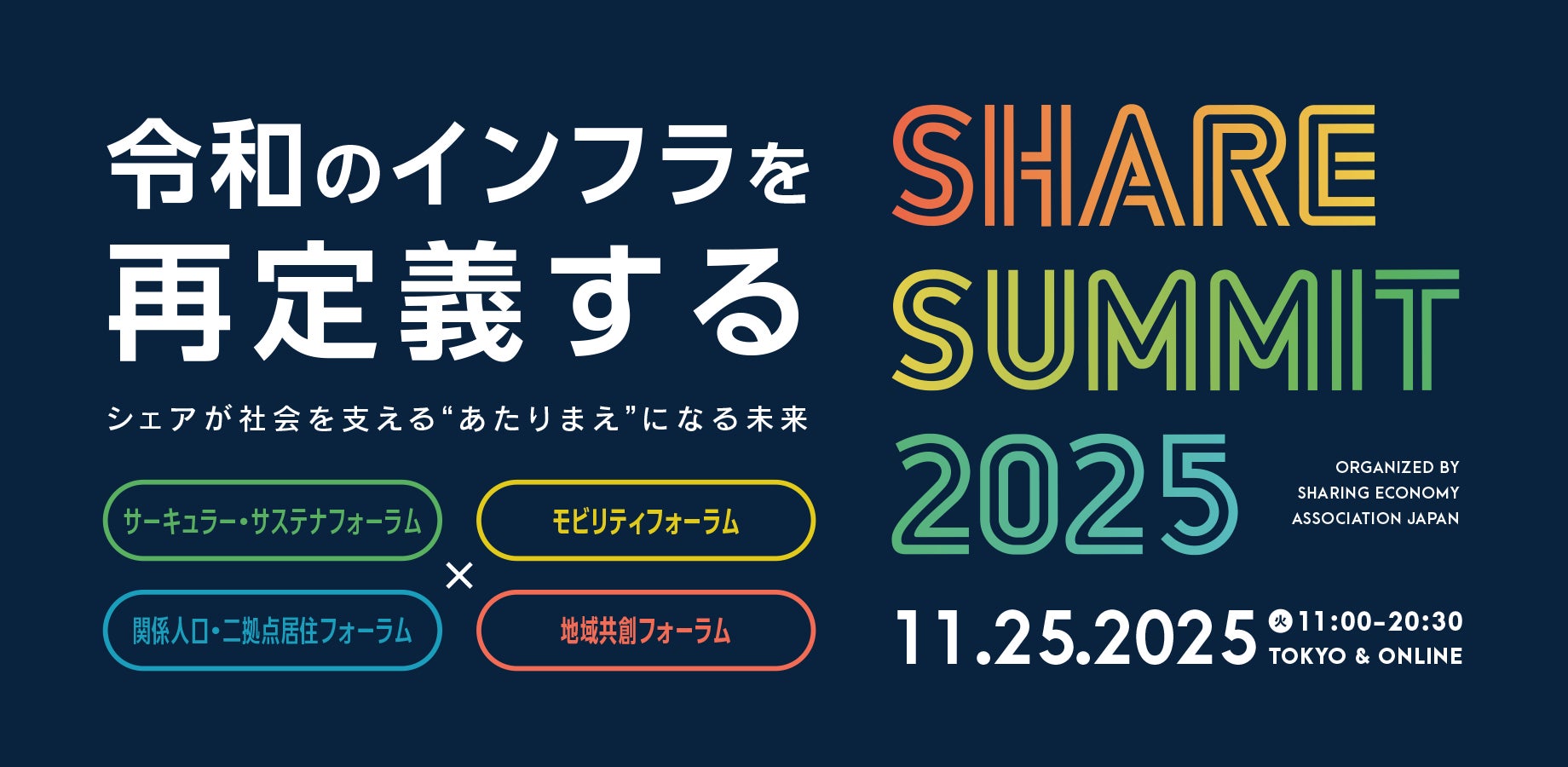 日本最大シェアリングエコノミーの祭典「SHARE SUMMIT 2025」、11月25日(火) に開催決定!