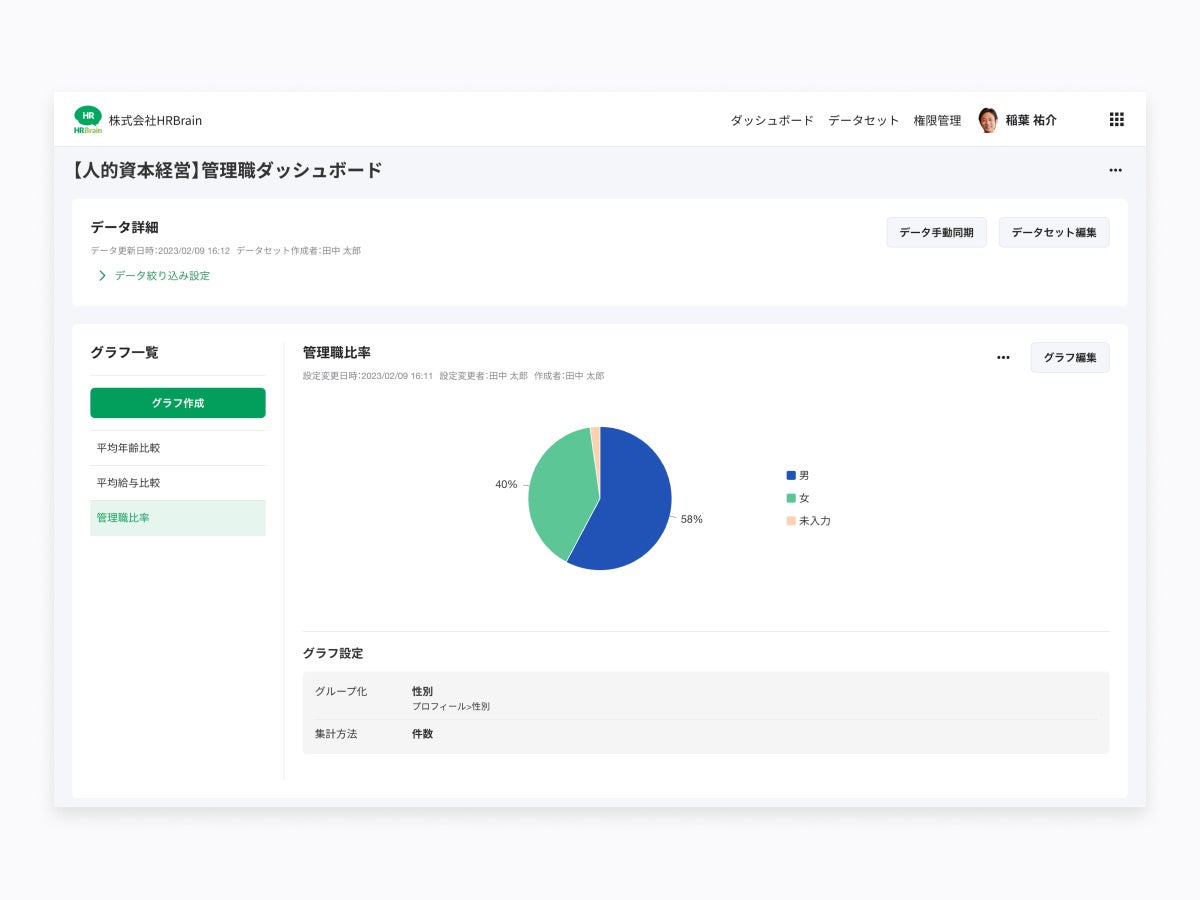 HRBrainが提供する「HRBrain タレントマネジメント」は、人材データの一元管理・活用までワンストップで実現、戦略的な人事の意思決定を支えるタレントマネジメントシステムです。「HRBrain タレントマネジメント」の一機能として、人的資本の情報開示に対応した人材データのカスタムグラフ機能をこの度リリースしました。