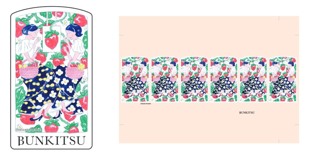 9月1日(木)~11日(日)の期間中、「文喫 六本木」の喫茶室でケーキをお召し上がりの方に、「六本木いちご畑」メインビジュアルのイラストステッカーをプレゼントいたします。また、同期間中、「文喫 六本木」で書籍をお買い上げの方には、同じく「六本木いちご畑」メインビジュアルイラストのブックカバーをプレゼントいたします。絵本『こはるとちはる』の主人公・こはるとちはるの大人になった姿が描かれた、本企画のための描き下ろしオリジナルノベルティです。