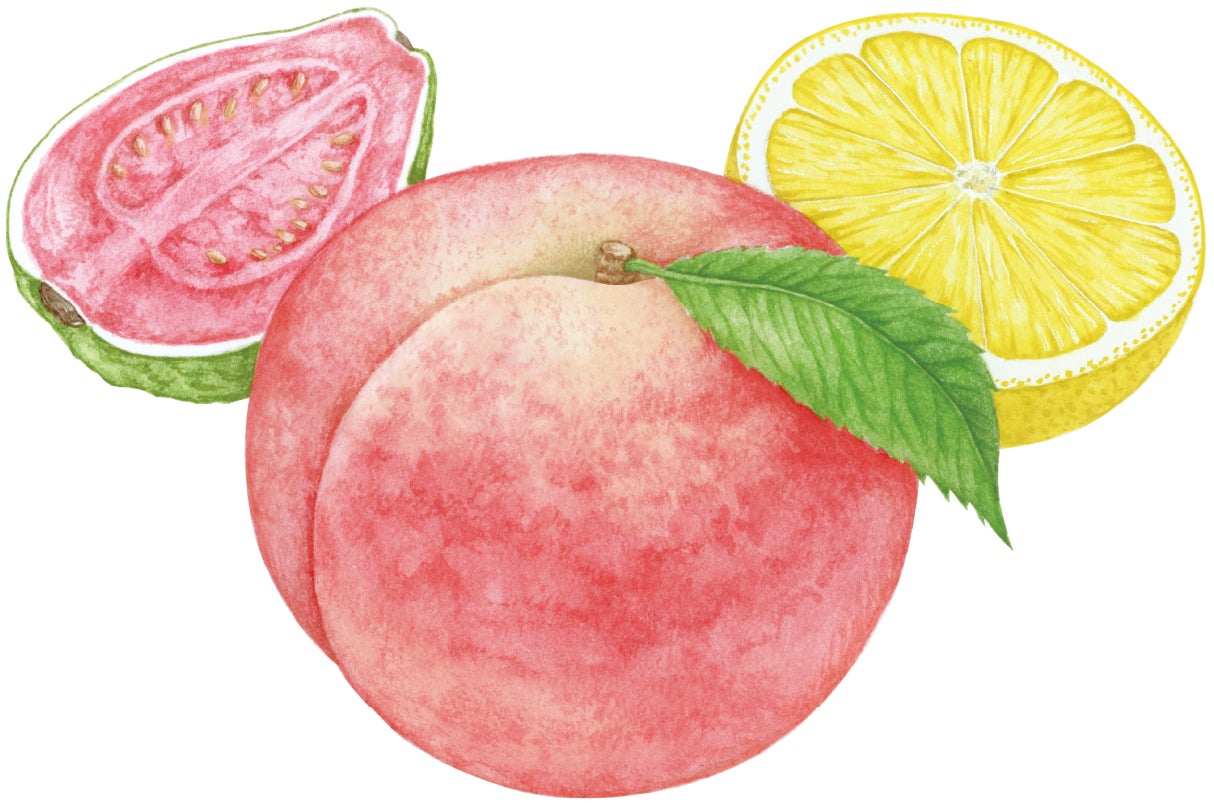 若い世代に人気フレーバー「ピーチ、グレープフルーツ、グァバ」の3種類のフルーツの組み合わせを採用