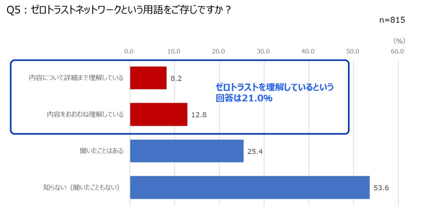 (2)「ゼロトラストネットワーク」を理解している人は21.0%