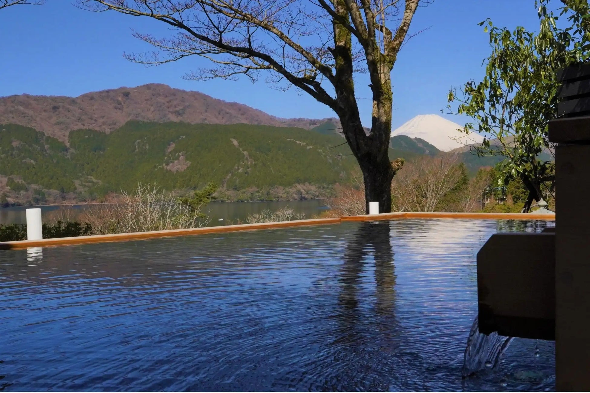 芦ノ湖と富士山を同時に望む圧巻のロケーション。箱根十七湯のひとつ「蛸川温泉」を源泉としており、泉質は柔らかく肌あたりがなめらか。登録有形文化財にも指定された歴史ある建物の中で、非日常の贅沢な湯浴みをお楽しみいただけます。
