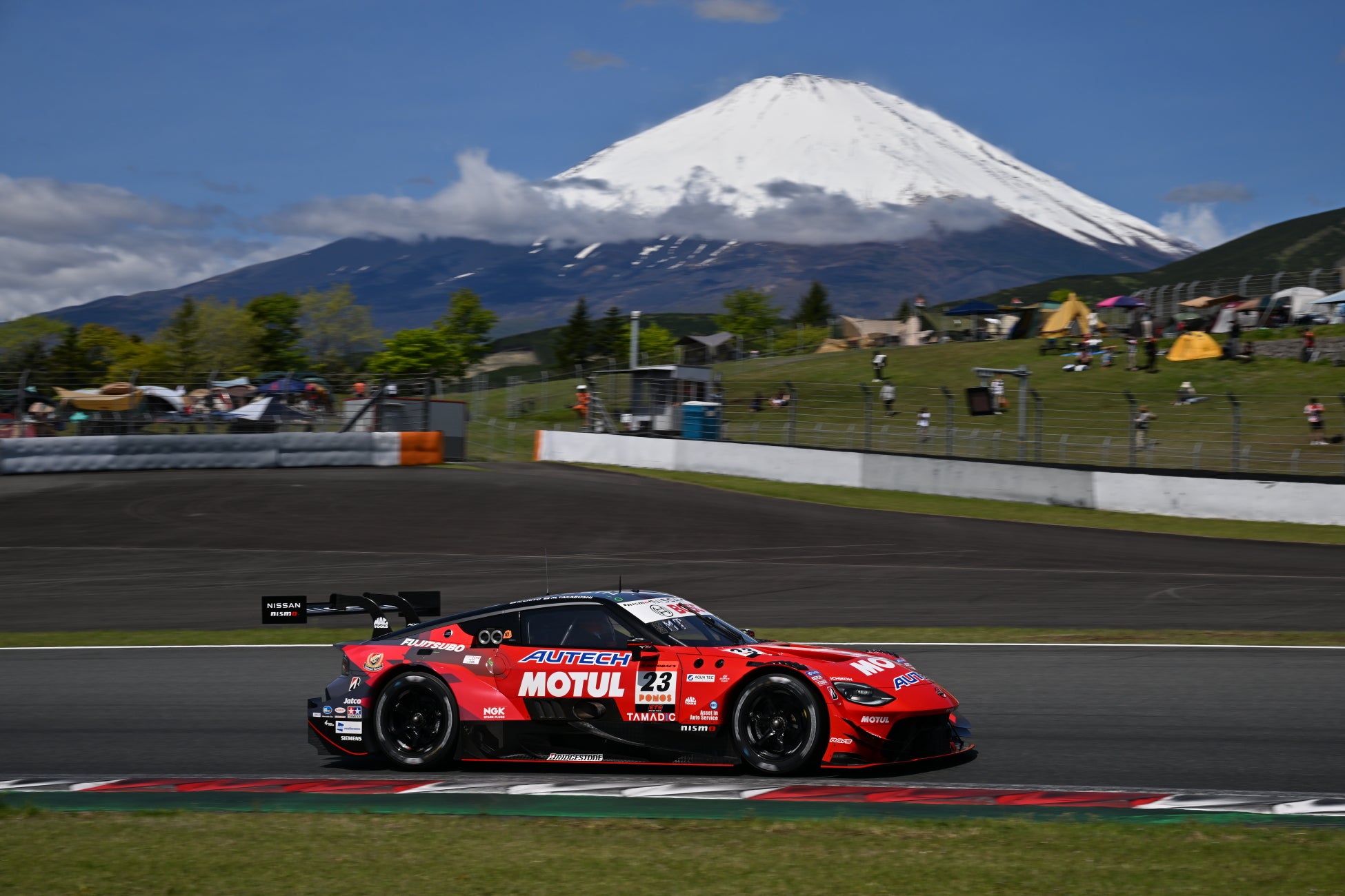「富士スピードウェイ」の裏側に潜入!プロのレーサーがコースの魅力を解説しながら、バスでレーシングコースを走行。非公開エリアのバックヤードに潜入し、“舞台裏”を体感できるモータースポーツファン必見のツアーです。サーキット越しに望む富士山は圧巻です。