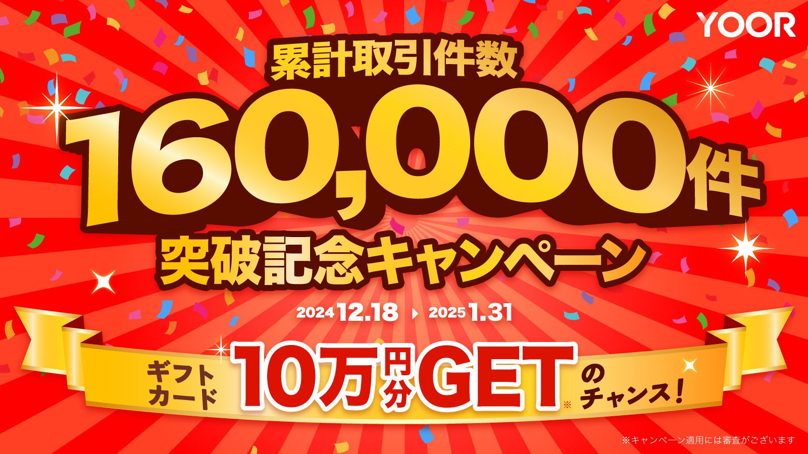 「YOOR」は、2021年3月のβ版リリースからまもなく4周年を迎えます。この度のサービスの大きな成長を記念し、「累計取引件数16万件突破記念キャンペーン」を開催いたします。