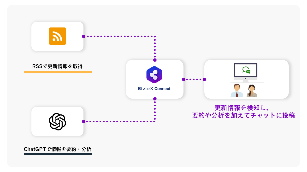 RSSで競合サービスのニュースリリースの更新情報を検知し、要約や分析を加えて社内チャットツールにメッセージを投稿する