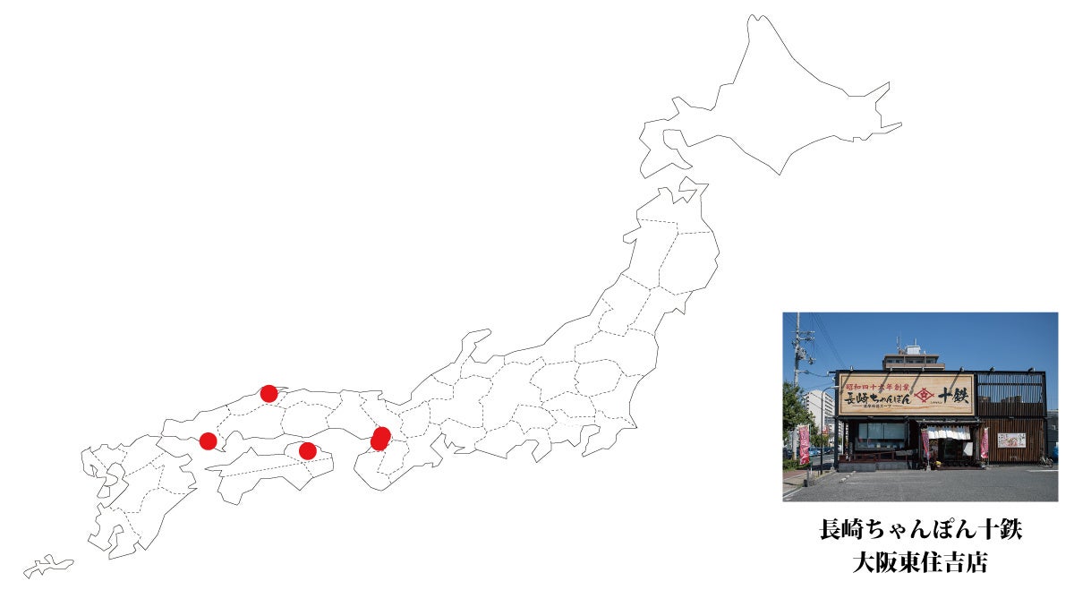 大阪府2店舗 香川県1店舗 島根県1店舗 山口県1店舗