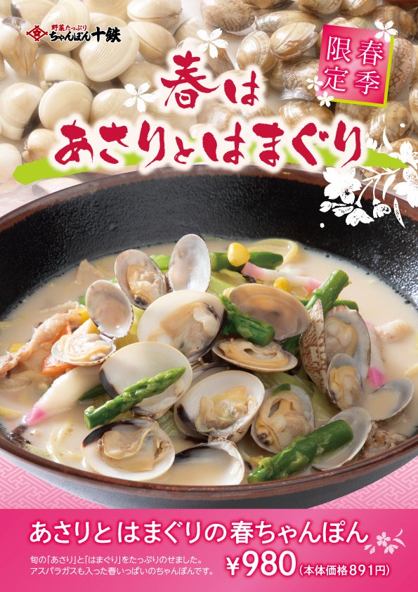 ~ 瞬間的に炒める職人技が引き出す旨みと食感~「長崎ちゃんぽん十鉄」春の期間限定メニュー「あさりとはまぐりの春ちゃんぽん」!